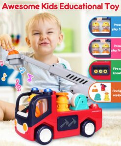 Baby Toys 12-18 Months Musical Fire Truck Toys For 1 Year Old Boys Girls Early Educational Learning Toy With Firefighting Tools/Music/Light Baby Toy Cars For 1 2 3 Year Old Boy Birthday Gifts