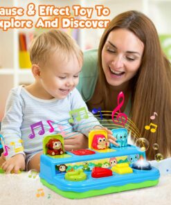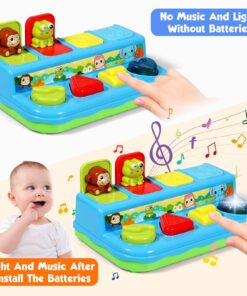 This Music Light Pop Up Toy Made By Very Durable Materials. The Surface Of The Material Is Very Smooth. Your Baby Will Not Get Hurt During Play. The Bright Colors And Cute Animals Can Attract Baby’S Attention. Baby Like Pressing Buttons Of Different Shapes And Colors. They Also Can Learn Number 1,2,3,4 By It. You Can Use It Without Batteries If You Think The Music Is Loud. It Can Improve The Fine Motor Skill Which It’S Very Important For Early Childhood. It Let Your Baby Start A Journey Of Exploration And Discovery. It’S A Very Good Gift For Baby 6 Months Up.
