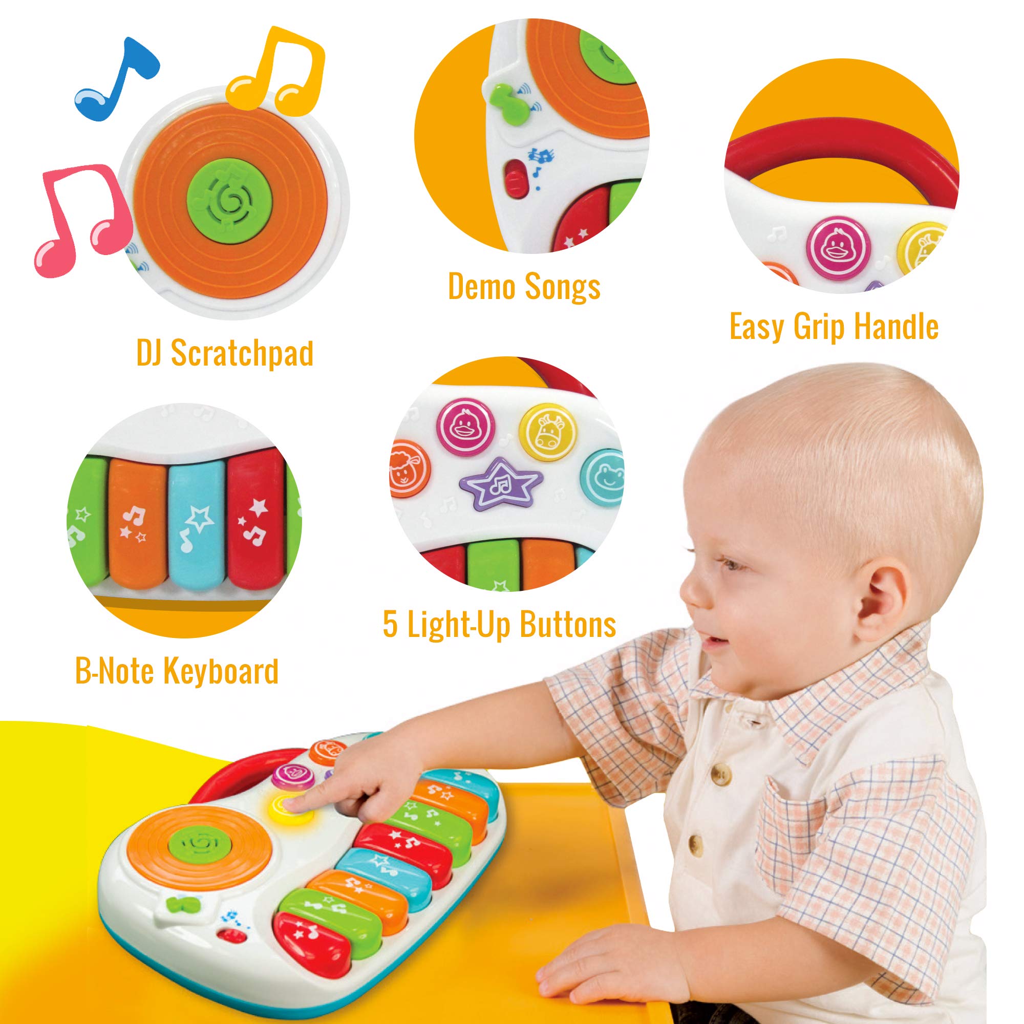 The Baby Piano Toy Is The Perfect Way For Your Little One To Discover The World Of Music, With Its Keynotes And 5 Light-Up Buttons.Designed Specifically For Babies Aged 1-3 Years Old, This Toy Piano Is The Ideal Tool For Your Child To Explore Different Notes And Melodies. | The Built-In Dj Mixer Allows Your Toddler To Create Their Own Unique Soundscapes And Compositions, Promoting Creativity And Imagination.Not Only Is This Toy Piano Fun And Engaging, But It Also Helps To Develop Your Child’S Fine Motor Skills And Hand-Eye Coordination. | The Baby Panio Toy Is Designed With Safety In Mind, And Is Made With High-Quality Materials That Are Durable And Long-Lasting.The Piano Toy Is Easy To Use, And Is Sure To Provide Hours Of Entertainment For Your Little One. | Whether You’Re Looking For A Birthday Or Holiday Gift, The Baby Piano Toy Is Sure To Delight And Entertain Your Toddler For Hours On End. | With Pre Programmed Demo Songs On Those Rare Occasions When Writer’S Block Strikes, Your Youngster Can Sit Back, Relax, And Enjoy Some Of The Cool Tunes That Come Already Loaded On This Fun Toy Piano.