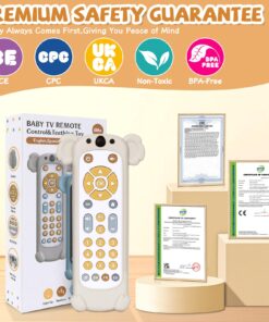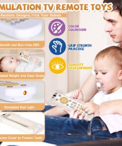 Orzbow Baby Remote Control Toy For 6 Month+ With Silicone Teether Cover, Tv Remote Toy With Realistic Light And Sound – English, French And Spanish For Infant Play Remote Musical Toys, Bpa Free, White