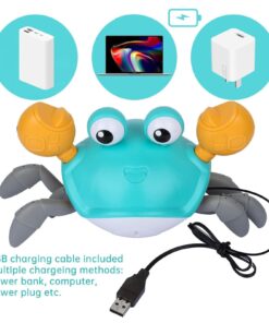 ?Fun “Catch Me” Crab Toy?-The Crawling Crab Toys Will Escape When The Toddlers Try To Catch It, Which Will Attract Your Kids To Interact With It. It Will Develop Baby’S Gross Motor Skill And Coordination. Great For Kids As Christmas Gift, Present, Stocking Stuff. | ?Automatically Avoid Obstacle?-The Cute Dancing Crab Toys Adopted Advanced Infrared Technology With Built-In Sensor, Which Can Automatically Avoid Obstacles And Move In The Opposite Direction. | ?Usb Rechargeable?-The Musical Walking Crab Toy Is Powered By 3.7V Lithium Battery, 2 Hours Charging Time Can Run For Up To 30 Minutes With Non-Stop Operation. Package Come With A Usb Charge Cable. Please Note: Do Not Use This Toy On Carpet, In Water Or Humid Environments. | ?Safe & Quality Abs Materials?-The Fun Moving Crab Toys Are Made Of High Quality Non-Toxic, Environmental & Durable Abs Material, The Edges Are Smooth Without Burrs, 100% Safe For Your Children To Play In Home Or Outdoor. | ?Toys With Led Light And Sound?-One Key To Turn On This Infant Crawling Crab Toys, Music And Led Light Will Be On And It Will Craw At The Same Time, And The Led Light Is Soft, Won’T Hurt Your Baby’S Eye. Great Gift For Your Kids On Birthday, Christmas Thanksgiving Or Other Days.