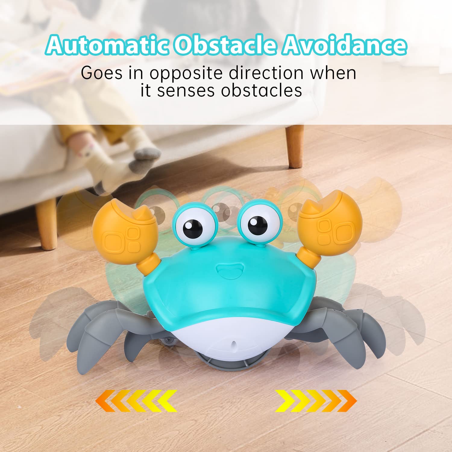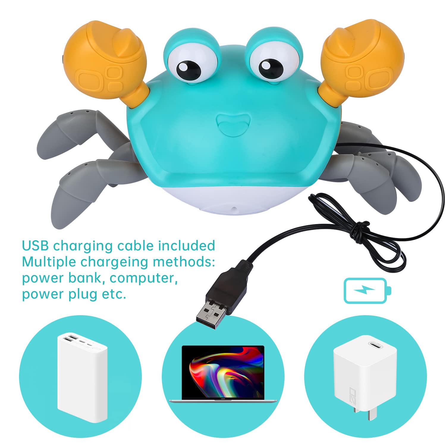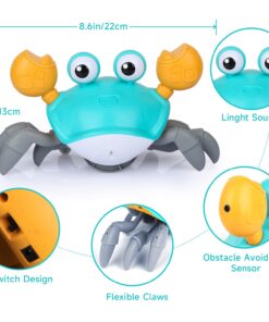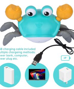 ?Fun “Catch Me” Crab Toy?-The Crawling Crab Toys Will Escape When The Toddlers Try To Catch It, Which Will Attract Your Kids To Interact With It. It Will Develop Baby’S Gross Motor Skill And Coordination. Great For Kids As Christmas Gift, Present, Stocking Stuff. | ?Automatically Avoid Obstacle?-The Cute Dancing Crab Toys Adopted Advanced Infrared Technology With Built-In Sensor, Which Can Automatically Avoid Obstacles And Move In The Opposite Direction. | ?Usb Rechargeable?-The Musical Walking Crab Toy Is Powered By 3.7V Lithium Battery, 2 Hours Charging Time Can Run For Up To 30 Minutes With Non-Stop Operation. Package Come With A Usb Charge Cable. Please Note: Do Not Use This Toy On Carpet, In Water Or Humid Environments. | ?Safe & Quality Abs Materials?-The Fun Moving Crab Toys Are Made Of High Quality Non-Toxic, Environmental & Durable Abs Material, The Edges Are Smooth Without Burrs, 100% Safe For Your Children To Play In Home Or Outdoor. | ?Toys With Led Light And Sound?-One Key To Turn On This Infant Crawling Crab Toys, Music And Led Light Will Be On And It Will Craw At The Same Time, And The Led Light Is Soft, Won’T Hurt Your Baby’S Eye. Great Gift For Your Kids On Birthday, Christmas Thanksgiving Or Other Days.