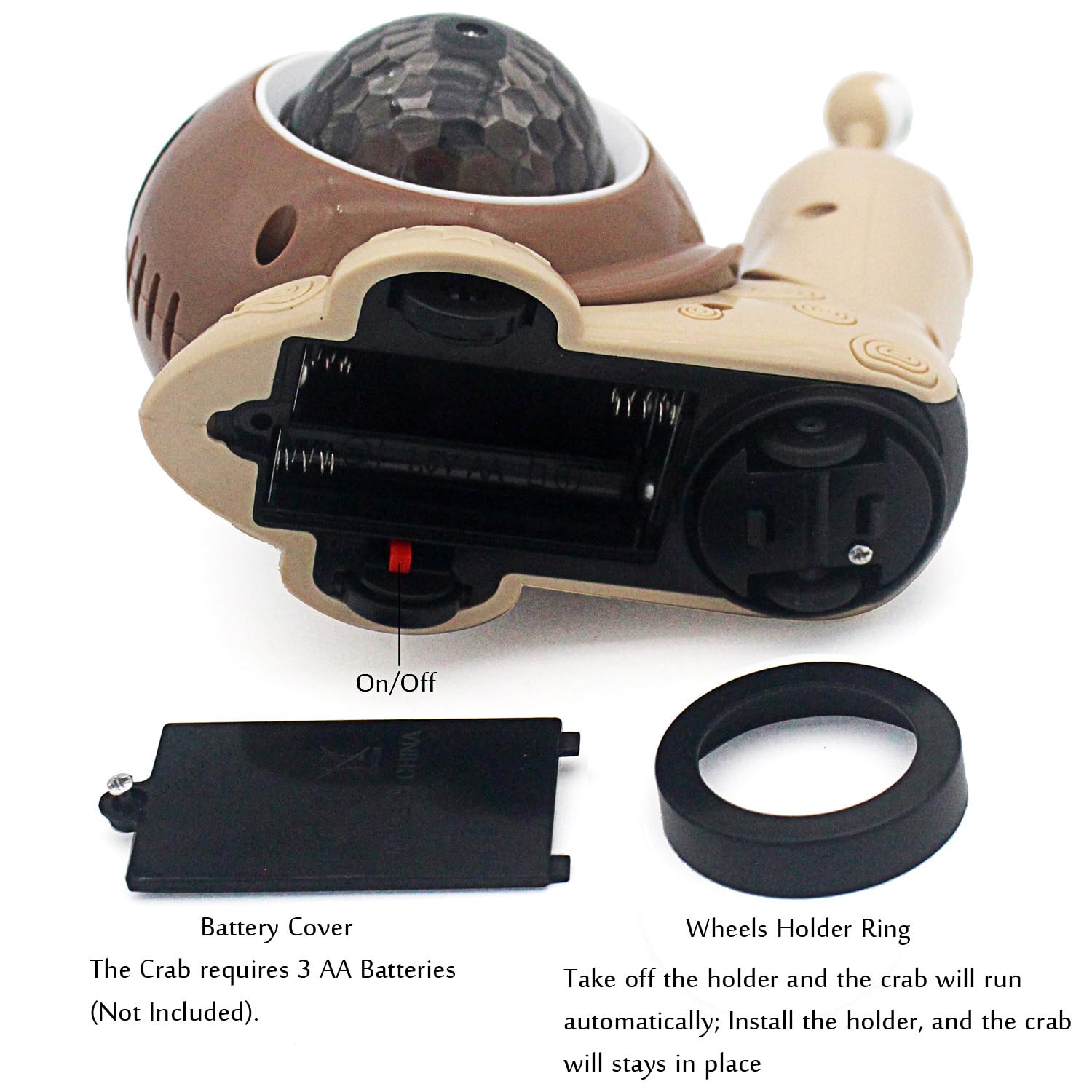 Functions: Crawl In Circle, Play Music, Emit Dazzling Light