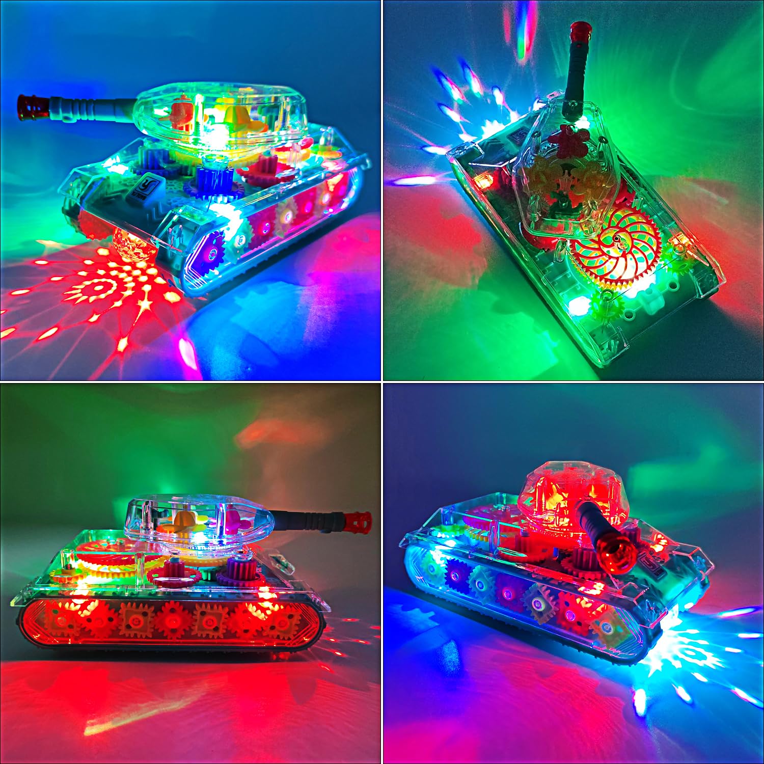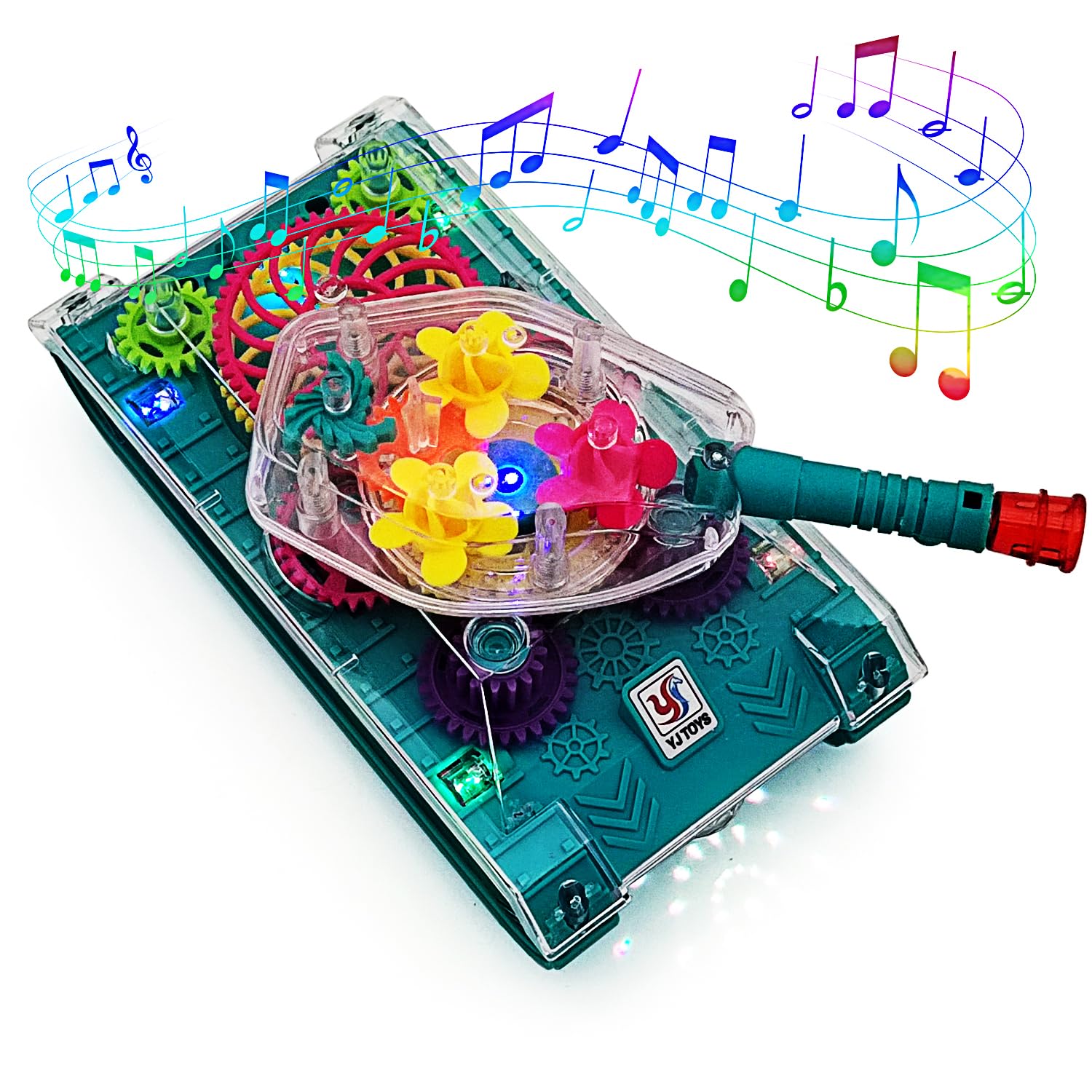 Tipmant Electric Tank Toy Electronic Vehicle Car Auto Driving, Transparent Gears, Music, Luminous Lights, Baby Toddler Kids Birthday Gifts