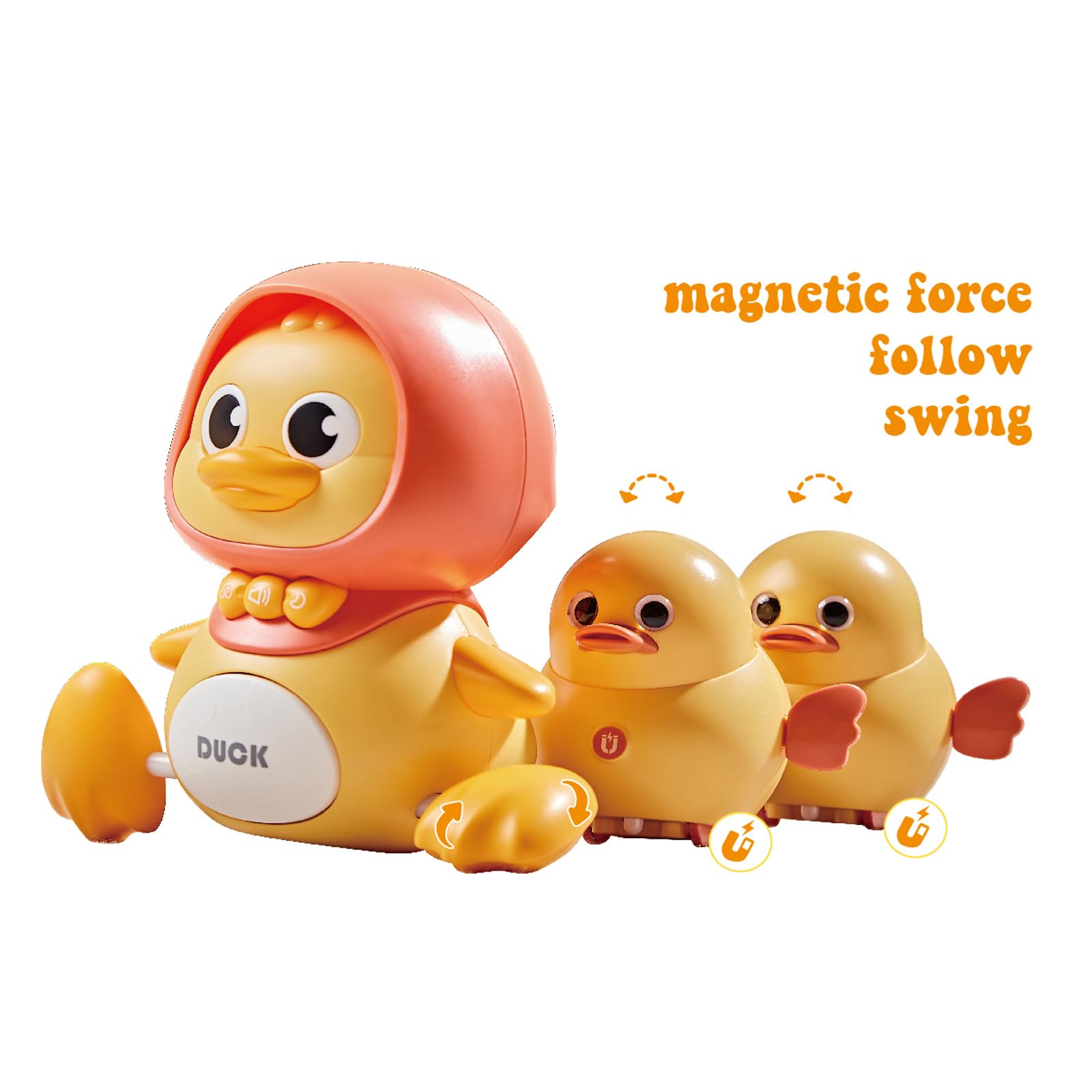 ??Interactive And Educational?: The Crawling Duck Toy Features A Wobbling And Swaying Motion That Captivates And Engages Babies, Encouraging Motor Skill Development And Visual Tracking. ??Safe And Durable?: Made From Abs Material, The Toy Is Sturdy, Impact-Resistant, And Safe For Playful Activities, Meeting Health And Safety Standards. The 90-Degree Steering Wheel Design Ensures Stability, Preventing Tipping Over During Crawling Activities. ??Fine Motor Skills Development?: With Magnet Connections And Buttons To Press, The Toy Promotes Fine Motor Skills And Hand-Eye Coordination In Babies As They Explore And Interact With The Magnetic Properties. ??Sensory Stimulation?: The Toy Incorporates Light, Music, And Sound Effects To Provide A Multi-Sensory Experience, Enhancing Auditory, Visual, And Tactile Stimulation For Comprehensive Sensory Development. ??Versatile Play Modes?: Offers Multiple Entertaining Play Options Including Circle Rotation And Pet Parade, Enabling Children To Giggle And Have Fun While Staying Engaged And Entertained By The Magnetic Features.>Description: